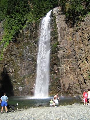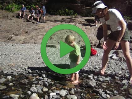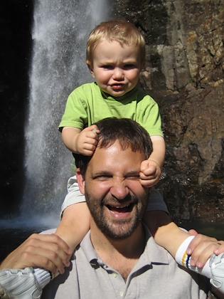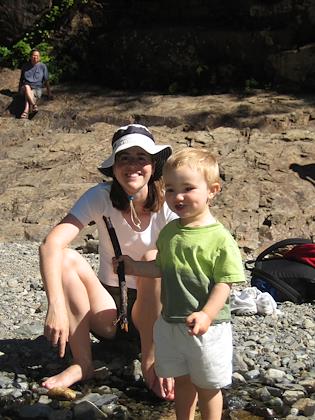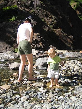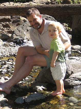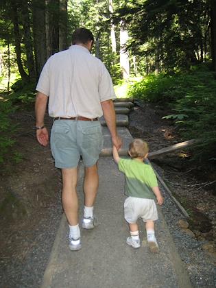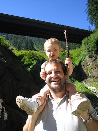 On a hike to Franklin Falls off I-90, the Denny Creek area. Kenny did very well, and walked all the way in. Our hikes are definately much less ambitious than pre-kids.