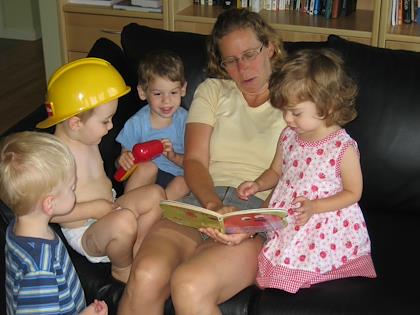 Ilana reading to Benji and Marina, Kenny, and Daven
