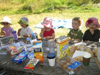 Seeing our Peps friends - snacking, all in a row