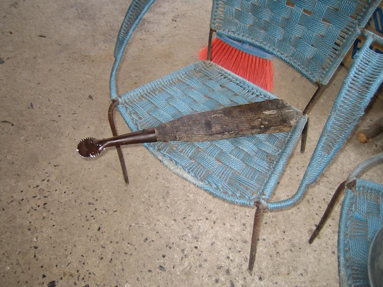 Grinder to get the meat out of the coconut, attached to a flat part to sit on