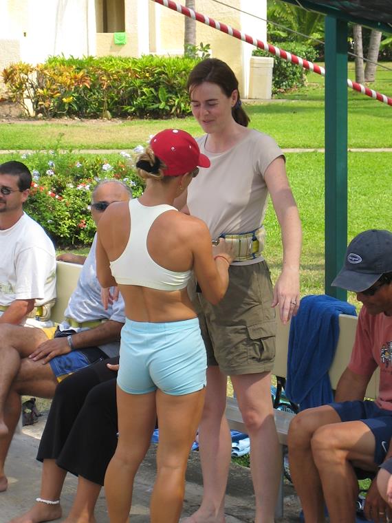 Prepping to go up on the trapeeze! They cinch the strap extremely tight - it was hard to take a breath!