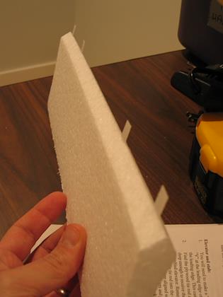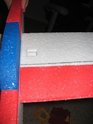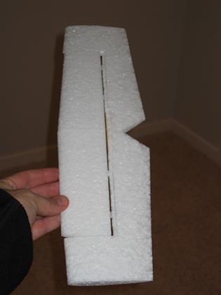 The hole is for two of the four servo's. It was scary cutting into the foam for the first time, but one gets used to it pretty quickly!My son, Kenny, sizes up the plane so far. I think he is impressed. Then, again, he is only 15 months old!