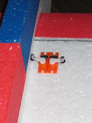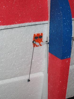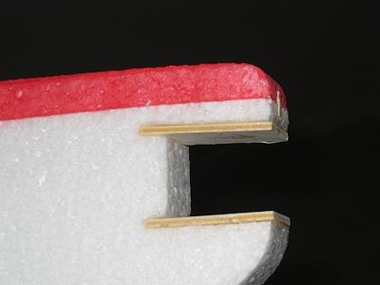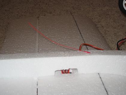 A control horn is installed in the elevator and rudder, as well as the ailerons.The servo's are installed into the holes in the wings.
