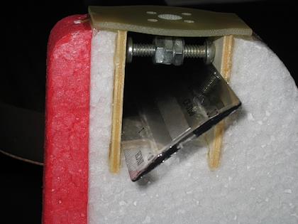 Then, the motor mount is epoxied onto the front of the plane. I had to stretch open the motor recess to make it square. I improvised two bolts attached to nuts which I glued together with CA to do this.Control rods and sleeves are installed to connect the servo's to the control surfaces.