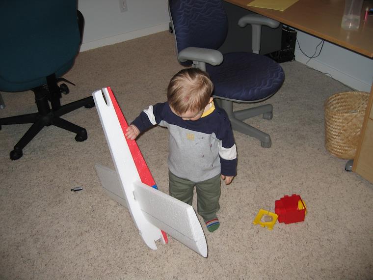 My son, Kenny, sizes up the plane so far. I think he is impressed. Then, again, he is only 15 months old!