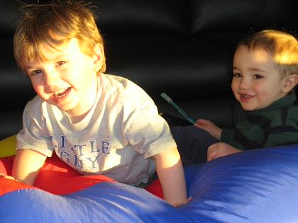 Kenny was doing these great somersaults with running starts - until we started taking a video, then they degenerated.