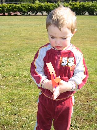 We bought a helicopter-type toy that you fling up in the air with a rubber band. Kenny had lots of fun fetching it again.