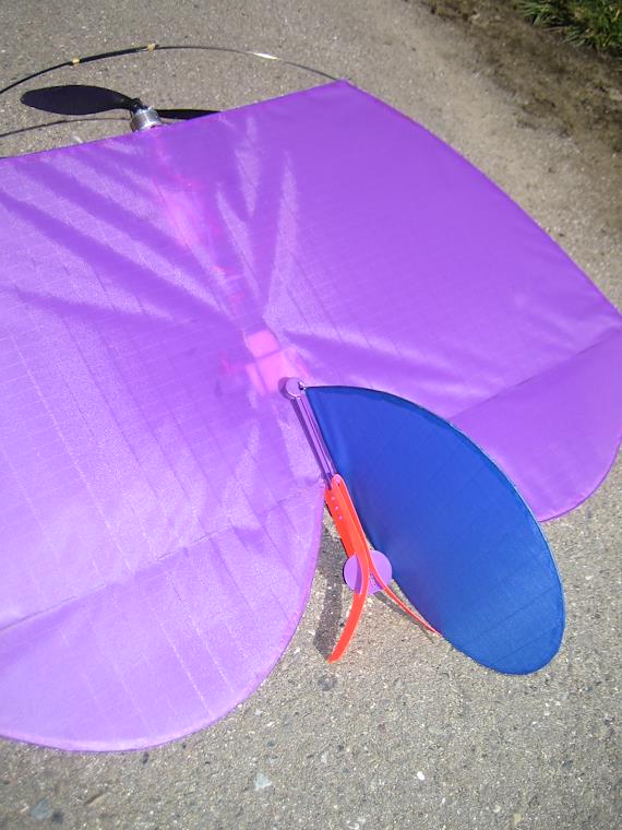 Eric hooked up the toy helicopter to release from his model plane, instead of shooting it up with the rubber band. It worked quite well.