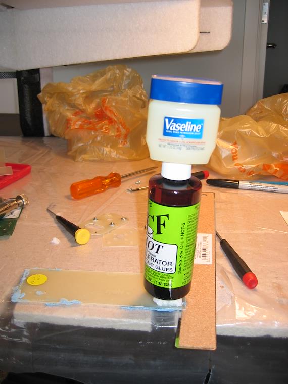 This is actually the second firewall plate I made. Three of the four bolts on the first piece were epoxied in place, even after I epoxied a test bolt which came out fine. Here I test the Vaseline approach.