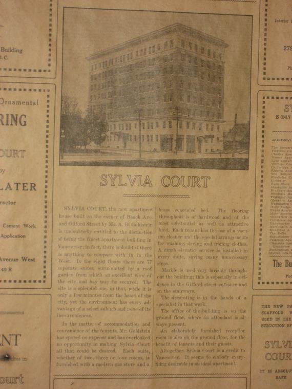 An original notice from when the Sylvia Hotel was build 1913, as a luxury apartment house