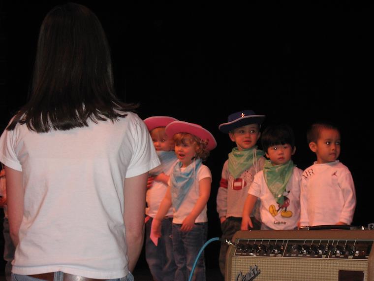 Their teacher Angela is leading them in a song