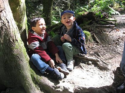 Taking a hike to Talus Rocks with Anil and Pranev and Daddy