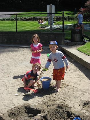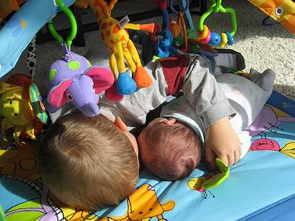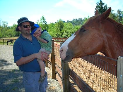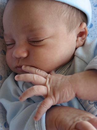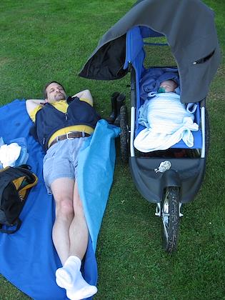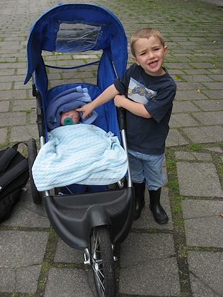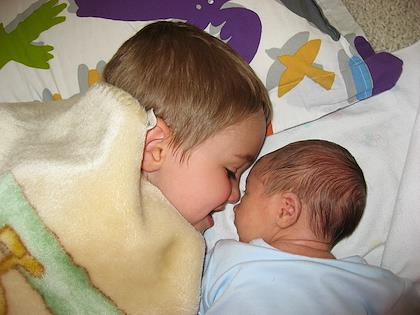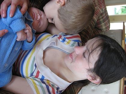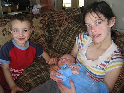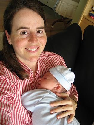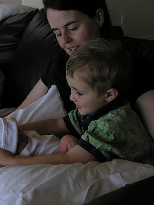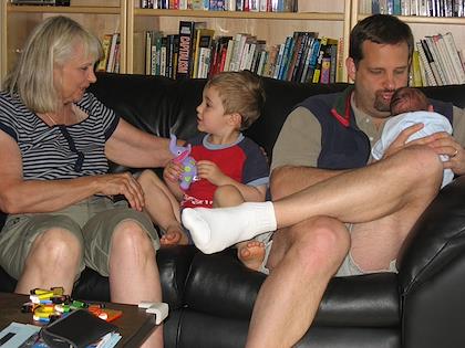 Visiting with Hannah, who has a new baby just a few days older than Peter