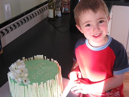 The neighbors gave us a beautiful cake to celebrate Peter's birthday