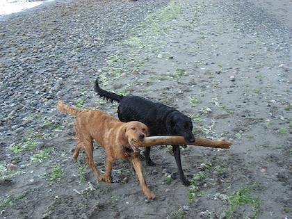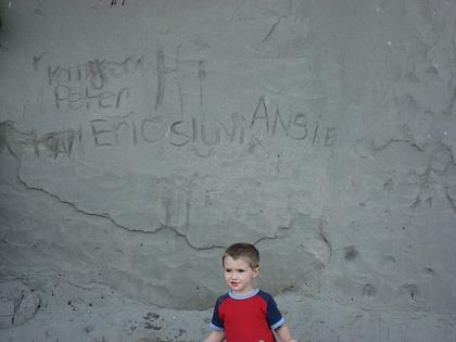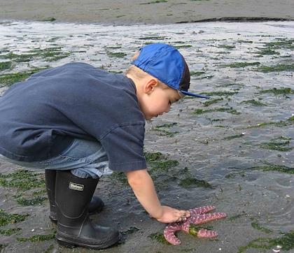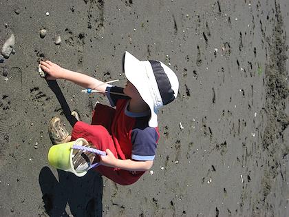 Collecting treasures on the beach - every shell, broken or not, was destined for Kenny's bucket