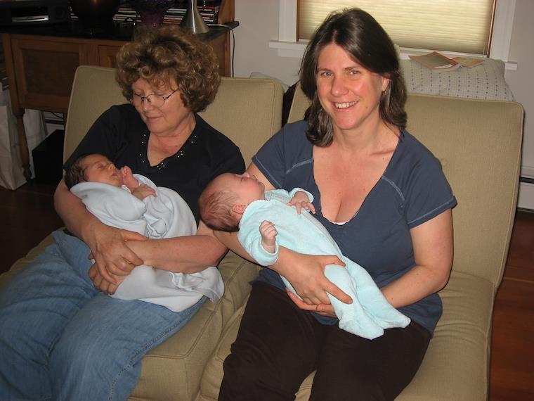 Visiting with Hannah, who has a new baby just a few days older than Peter