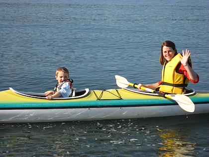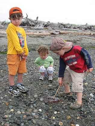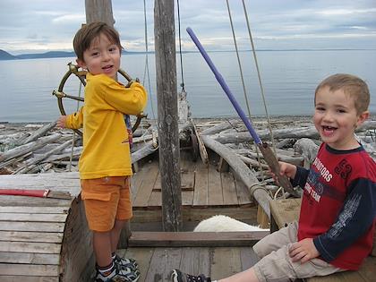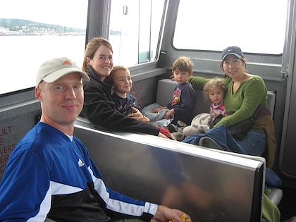 At Kelsey Creek Park - shelling cornOn the taxi ferry to Decatur Island to spend a few days with the Price family - Kayoko, Randy, Kenji, and Kimi