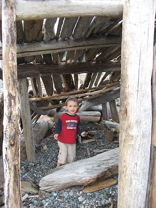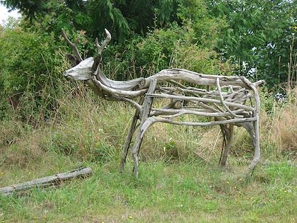 A fort on the beach, made of driftwood.A driftwood deer on the Decatur golf course