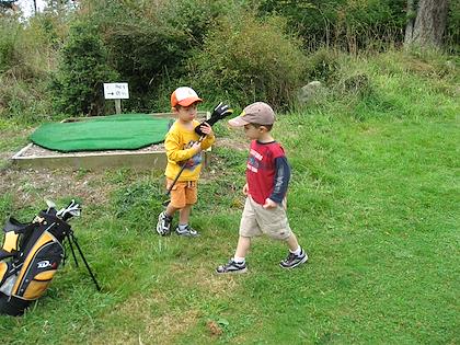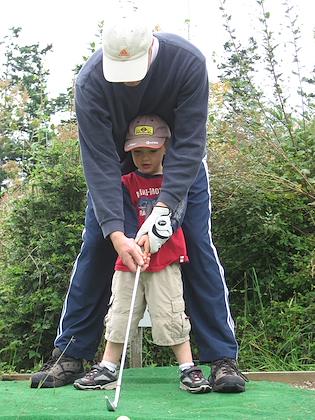 Kenji is a great golfer - he actually got par on a hole, with a 17 ft put!Kenny, learning how to hold a golf club