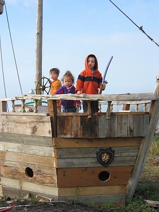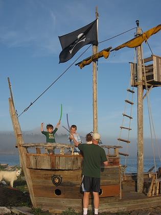 A view of the pond in the backyardA local on the island had build an amzing pirate ship, complete with crow's next, a hold with treasure chest, and a cabin