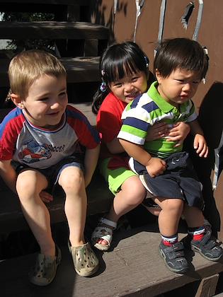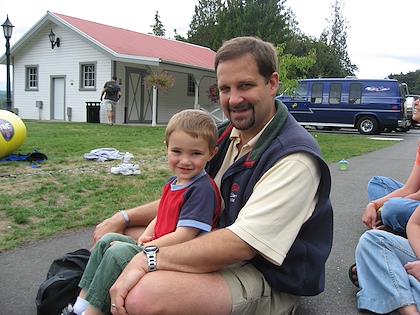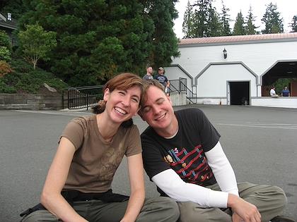 Kenny riding his bike!Sitting on the steps at Boehms candy factory in Issaquah, with Allison and Ethan
