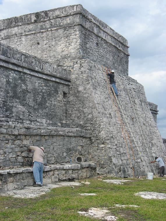 A guy repairing the mortar on one of the pyramids. The fact that this was happening so casually made me suspect how much of the original all these ruins contain