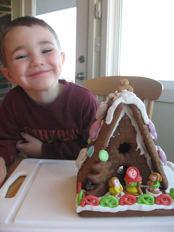 Kenny made a gingerbread house from a kit, with a lot of help from dad.