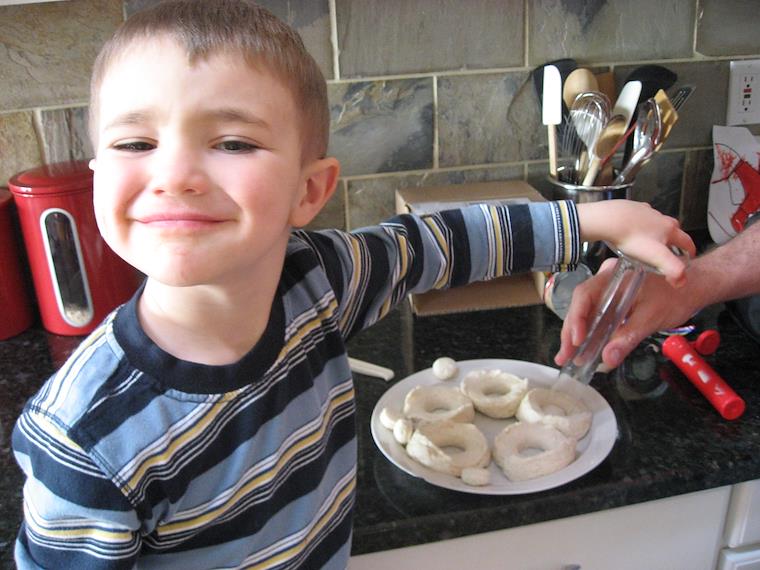 The easy way to make donuts - use large size refridgerator biscuits, fry them, then shake in a bag with sugar and cinnamon. No, not healthy, but yummy and fun to try. They're a bit salty.