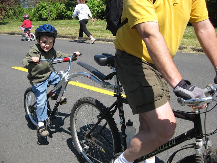 We did a test bike ride along Lake Washington Boulevard with Angie and Justin, checking out how Peter did in the back carrier (didn't like it that much) and Kenny in his pull along carrier (he liked it okay).