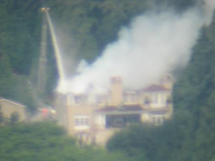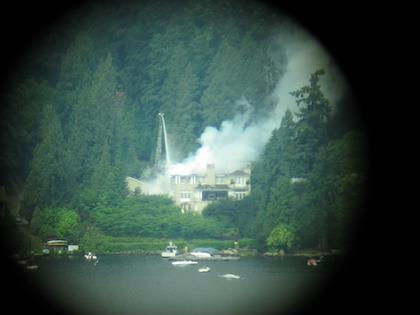 | A house caught fire on Mercer Island on July 4th. I was wondering if it was a fireworks accident, but the newspaper report said it was something smoldering in the attic. This is through the telescope. | |