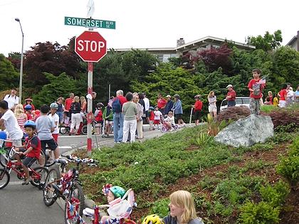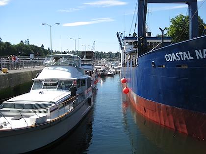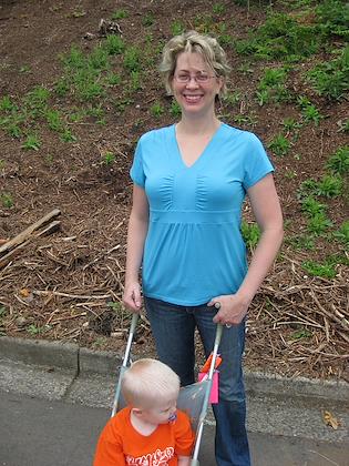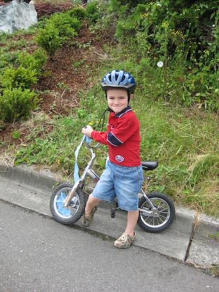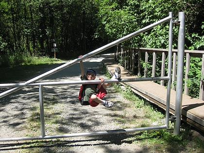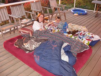 |  | |  | | At the Chittenden locks. Eric and I actually biked here with the kids, though we didn't get any photos of us on the bikes. It was a harrowing ride - Eric thought there was a nice bike path to the locks, but it was mainly on roads. | | Kenny and I slept outside on the deck for fun. It got pretty chilly! |
