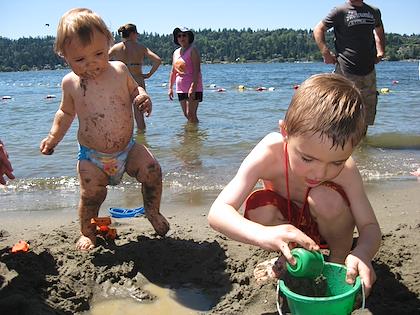 |  | |  | | At Newcastle Beach Park with Peter. He ended up eating a lot of sand - and we could tell in his diaper, the next day! | |