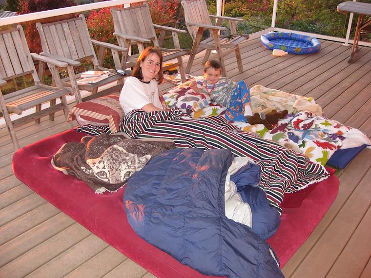 Kenny and I slept outside on the deck for fun. It got pretty chilly!