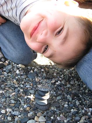 |  | |  | | Kenny and I hung out at the beach. Kenny collected some flat rocks for me, and I managed to balance some of them. | |