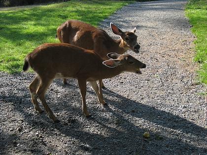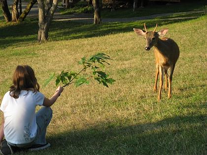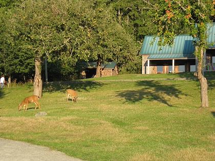 |  | |  | | Lots and lots of deer were on the grounds | | The campfire theater (though there wasn't a campfire, since the smoke apparently always blew right into the audience) A walk at sunset |