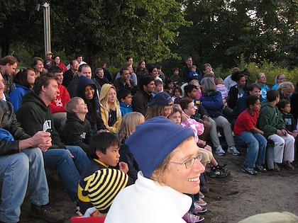 |  | |  | | A campfire gathering, with Ilana front and center | | The kids had a good time imitating some of the skits from last night |
