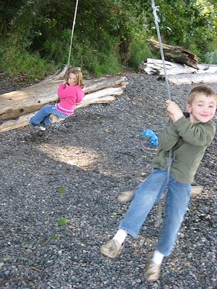 |  | |  | | Peter playing with bull kelp | | Eric getting ready to do the giant swing |