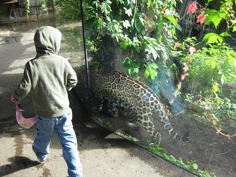Kenny keeps pace with a leopard at the Woodlawn Park Zoo