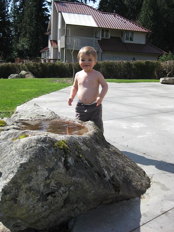 Peter really enjoyed splashing at the rock bird bath, at the Blatts