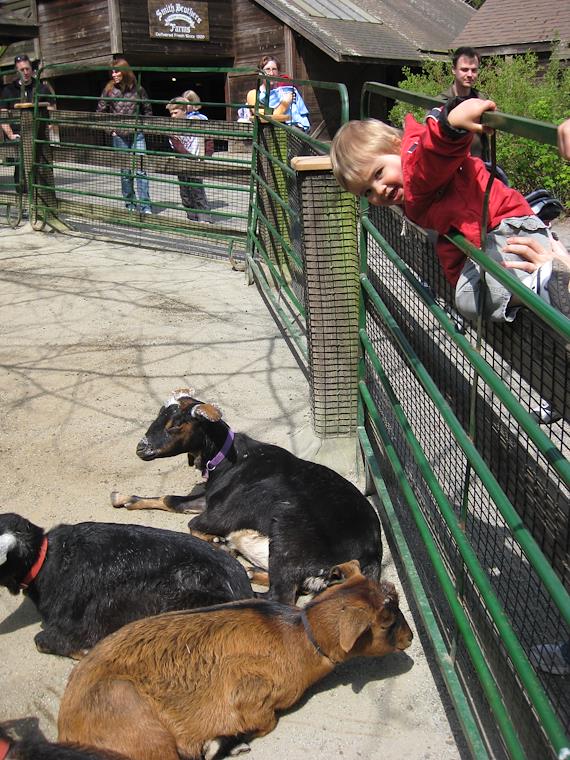 At the Woodlawn Park Zoo, with the Hugebacks, Peter just wants to climb on in