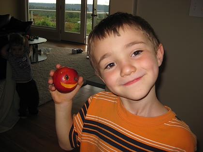 Peter's second birthday! We made a fruit tart type of cake, with berries and kiwis on top.