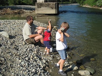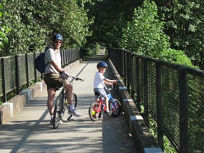 I did a "midnight" hike (actually we finished around 9 PM) to Rattlesnake Ridge with Ilana and some friends of hersBiking along the Snoqualmie River Trail with the kids. Nice enough, but those rail trails can be a little boring - they're so straight! We stopped at a playground for some snacks here - always Peter's favorite part of the bike ride.