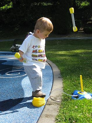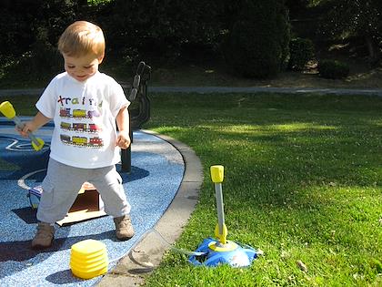 Peter in the playmobile castlePeter playing with the stomp rocket