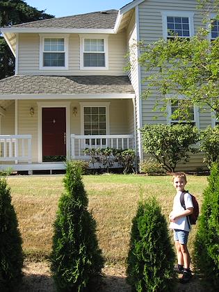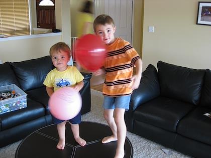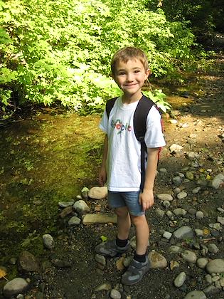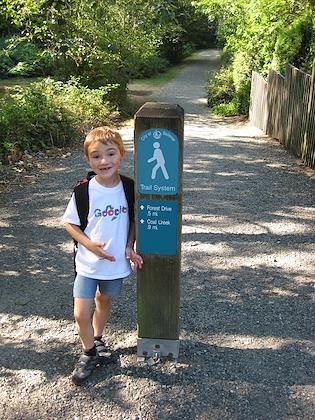 | Ballons were a big hit in our household - Kenny can blow them up by himself | | Kenny and I did a hike from our front stoop, down the roads and paths through our neighborhod, down to Coal Creek Parkway, and up another trail from there, where Eric and Peter met us. We got the idea from the Weist family. Now whenever we drive by a certain dip on Coal Creek Parkway, we remember crossing it on our hike. |