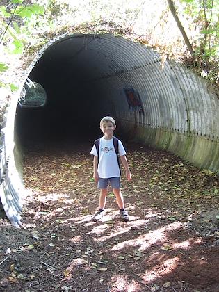 | A tunnel under Forest Drive | | We found a great huckleberry bush |