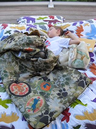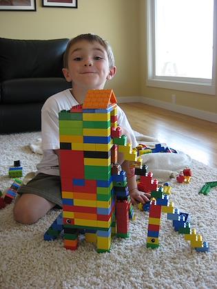 | Sleeping on the deck | | The big bag of Duplo legos that I got from a garage sale have proven to be a big hit |