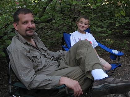 |  | |  | | Eric is well protected against mosquitos | | Camping plus kids = lots of dirt! |