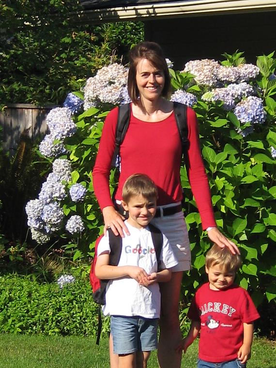 Kenny and I did a hike from our front stoop, down the roads and paths through our neighborhod, down to Coal Creek Parkway, and up another trail from there, where Eric and Peter met us. We got the idea from the Weist family. Now whenever we drive by a certain dip on Coal Creek Parkway, we remember crossing it on our hike.