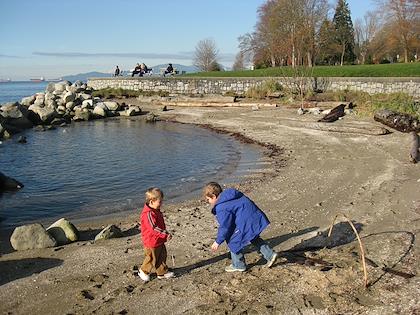 Near Granville Island Public Market, we found a small playground where a woman was feeding the pigeons.