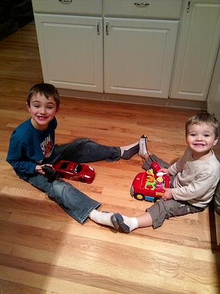 Kenny and Peter playing with some toys - picture from my Nexus One phone